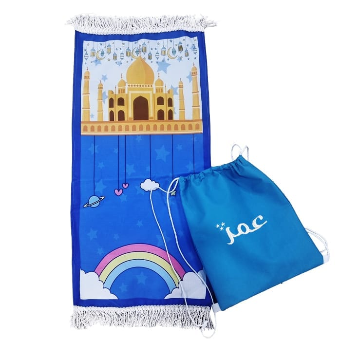 طقم سجادتي الأولى .. مكون من سجادة صلاة صغيرة للأطفال مع حقيبة ظهر يمكن تطريز أي اسم عليها