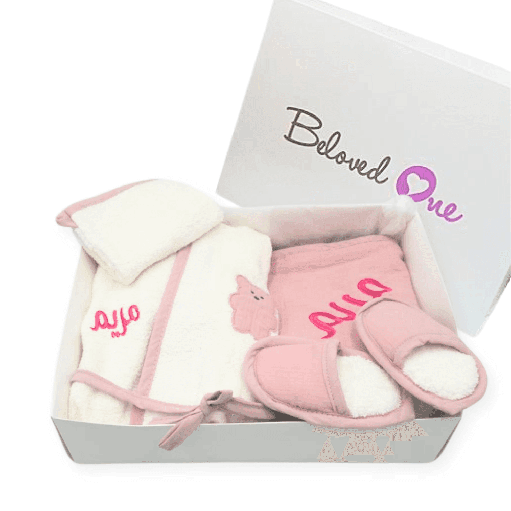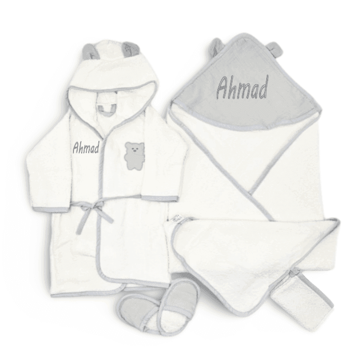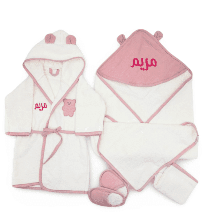 طقم الاستحمام للمواليد ، يحتوي على روب حمام ، نعلة صغيرة ، منشفة ، ليفة اطفال .